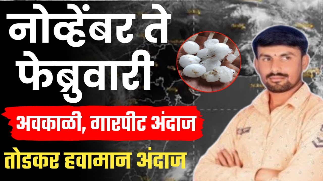 Todakar havaman and live ; नोव्हेंबर ते फेब्रुवारी महिन्याचा हवामान अंदाज लाईव्ह. Todakar havaman and live ; नोव्हेंबर ते फेब्रुवारी या कालावधीत महाराष्ट्रात मोठ्या पावसाचा किंवा अतिवृष्टीचा कोणताही धोका नसेल. नोव्हेंबर महिन्यातील वातावरणाची प्रणाली काहीशी अस्थिर असली तरी, पावसाचा मोठा प्रभाव जाणवणार नाही. त्यामुळे शेतकरी बांधवांनी कोणत्याही अडथळ्याविना पेरणी, फवारणी आणि इतर शेतीची कामे बिंदास्तपणे … Read more