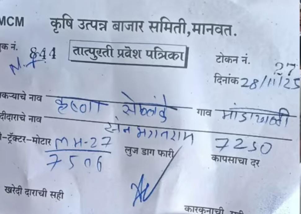 Manavat cotton rate ; मानवत मधील आजचे पावत्या सहित कापूस बाजारभाव पहा.