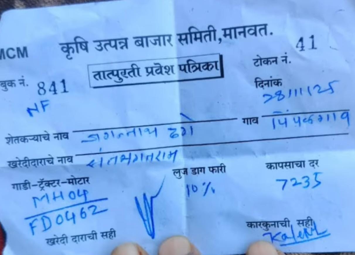Manavat cotton rate ; मानवत मधील आजचे पावत्या सहित कापूस बाजारभाव पहा.
